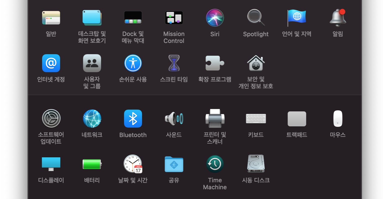 2. 시스템 환경설정에 들어갑니다.