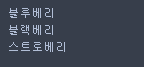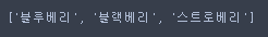 fruit_list = ['딸기', '바나나', '블루베리', '블랙베리', '오렌지', '사과', '스트로베리']