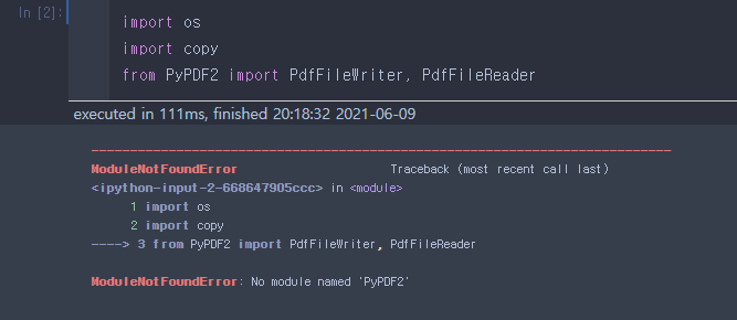 제목 그대로 PyPDF2를 설치했는데, Jupyter notebook에서 죽어라 인식이 안됩니다.