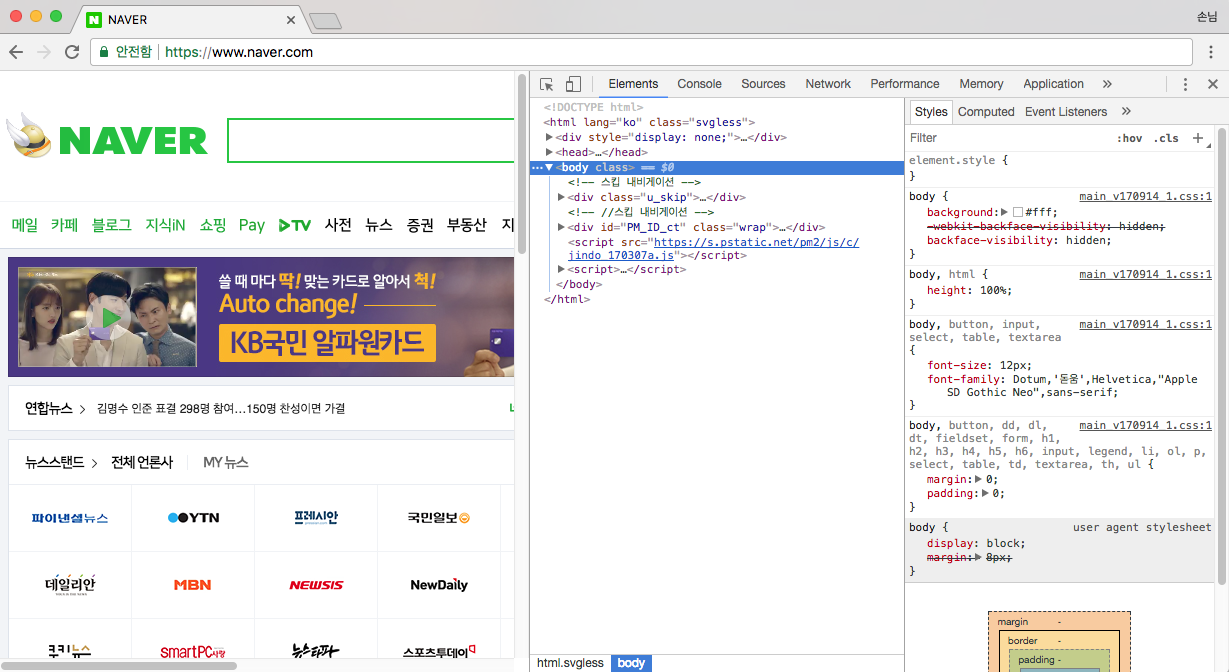 이제 상단에 Elements가 선택되 있는것을 확인합니다.
