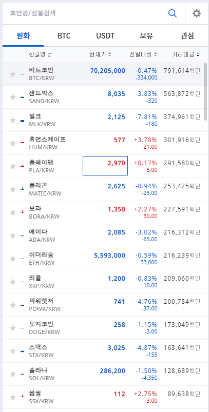 업비트 한화 코인 마켓 모든 코인들의 정보를 공유 드렸습니다.