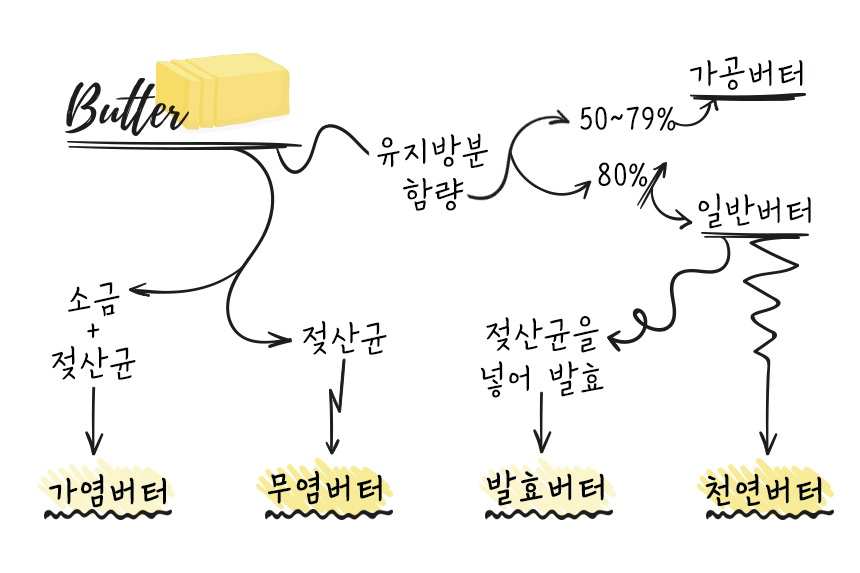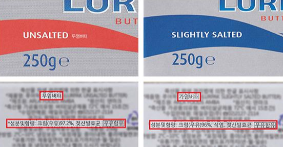 건강한 버터를 고르고 싶다면 구입 전 뒷면의 설명을 살펴보자. 먼저 버터와 가공버터의 표기상 차이를 알아야 한다. 우리나라에서는 유지방이 80% 이상이면 버터, 유지방이 50% 이상이면 가공버터로 구분한다. '무염버터', '가염버터' 혹은 '유크림100%'라고 표기되어 있다면 대부분 또는 전부를 우유로 만든 '건강한 버터'라고 할 수 있다.