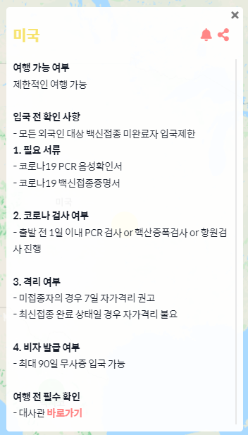 코로나 프리 맵 - 해외여행 가능국가 알리미