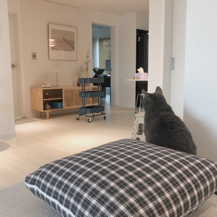 - 로봇 청소기가 드나들 수 있게, 티비장과 소파에 다리 높이가 어느정도 있어주면 좋을 것 같다.
