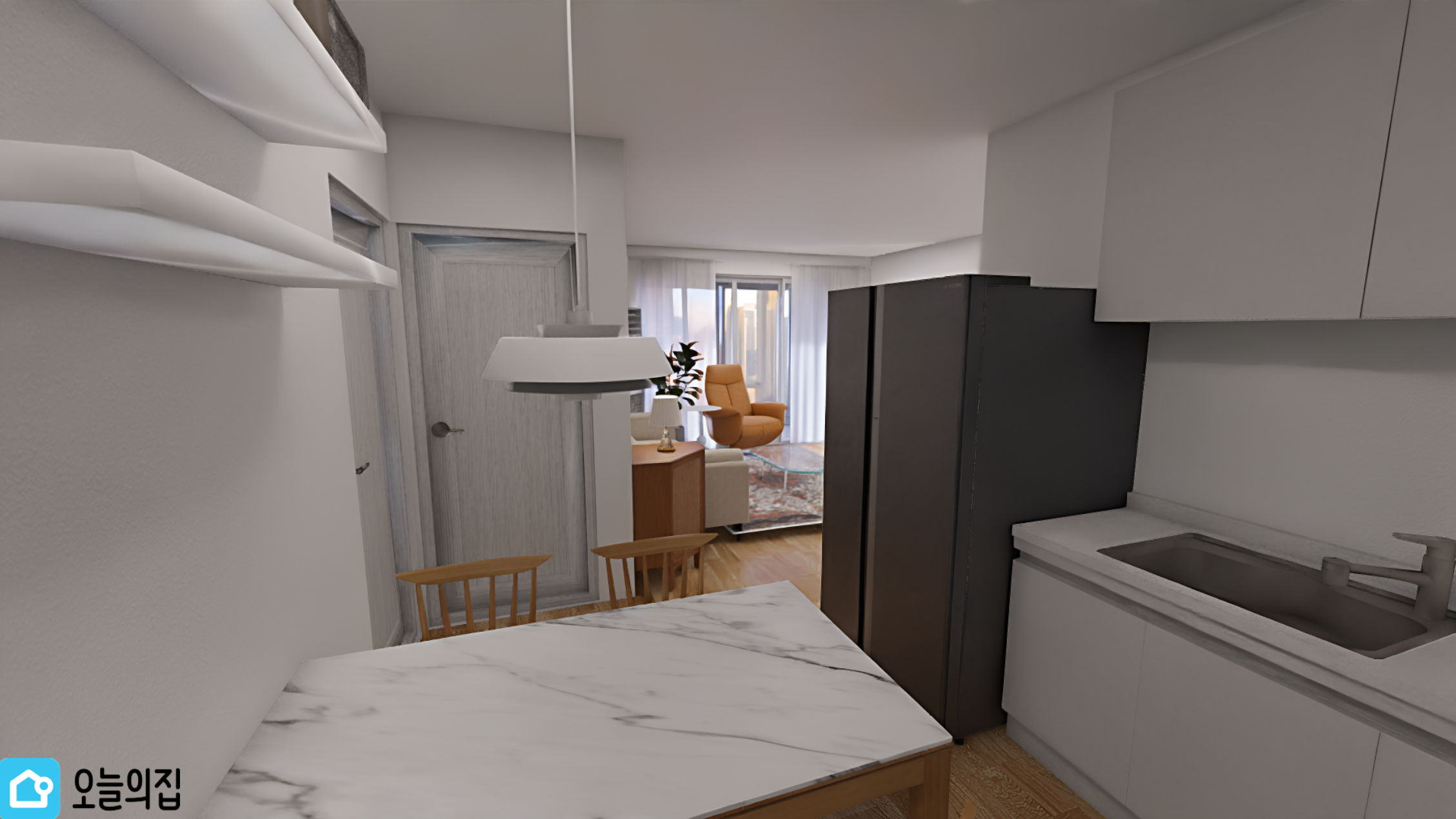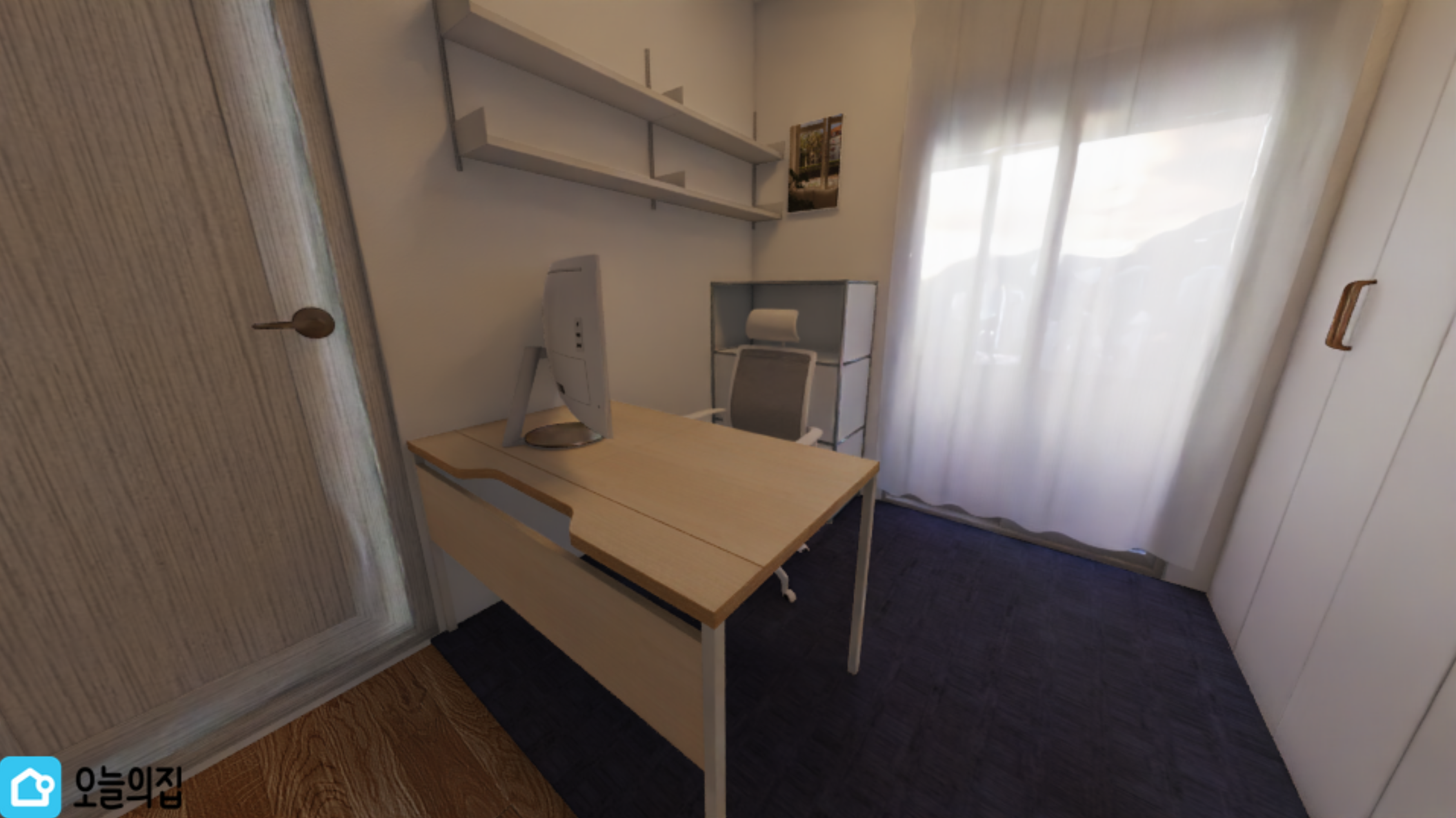 트렌디한 가구들을 배치하고, 사무공간 같은 구조로 배치해 보았다.