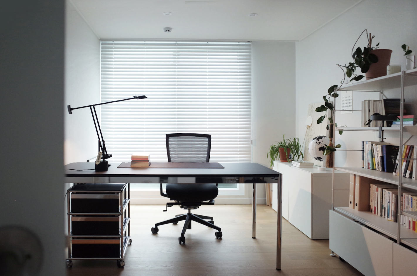 - 서재엔 책상, 책꽂이, 수납함, 장식 선반이 있으면 좋겠다.