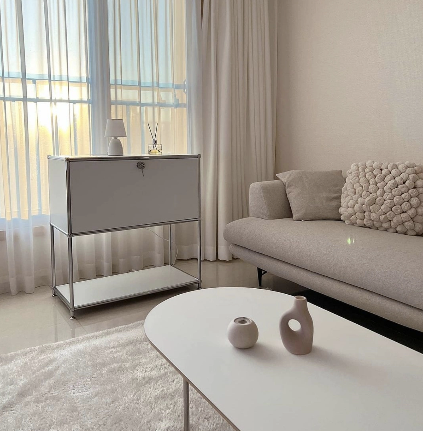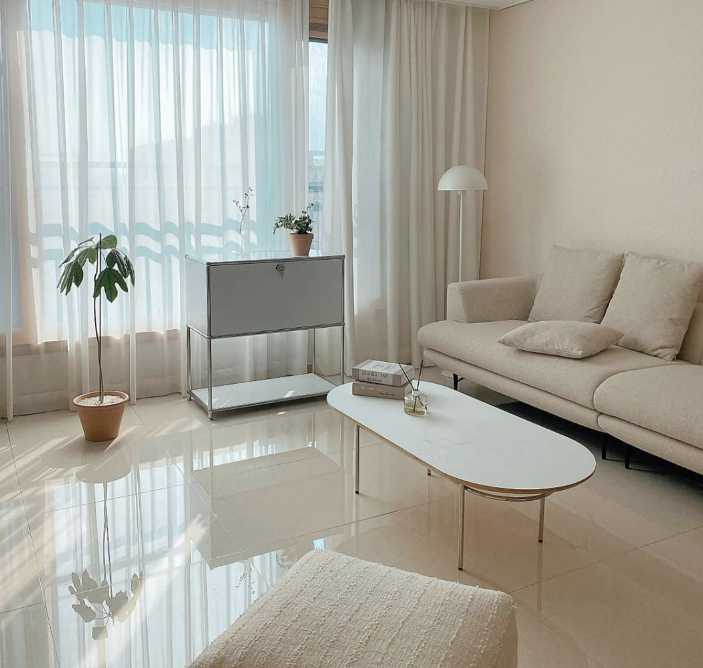 - 커튼 : 커튼은 기본 화이트나 소파색 톤온톤 + 화이트, 투톤으로 들어가 주면 더할 나위가 없을 것이다.