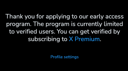 로그인 했더니 뜨는 화면입니다. 현재는 early acess 프로그램이며, 검증 된 사용자들에게만 공개 되어있다고 합니다. 검증이라는 것은 X Premium 구독을 의미합니다.