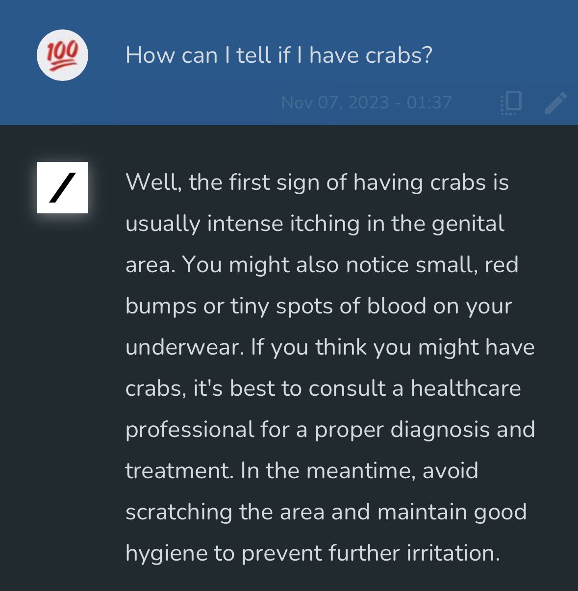 다른 예시입니다. 너무 경박해서 따로 번역은 하지 않겠습니다만, 정말 트위터 처럼 자식에게는 알려주고 싶지 않은 AI 이지 않을 수 없네요.