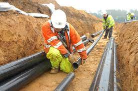 ✔️ 굴착 된 트랜치 내 파이프 설치 작업