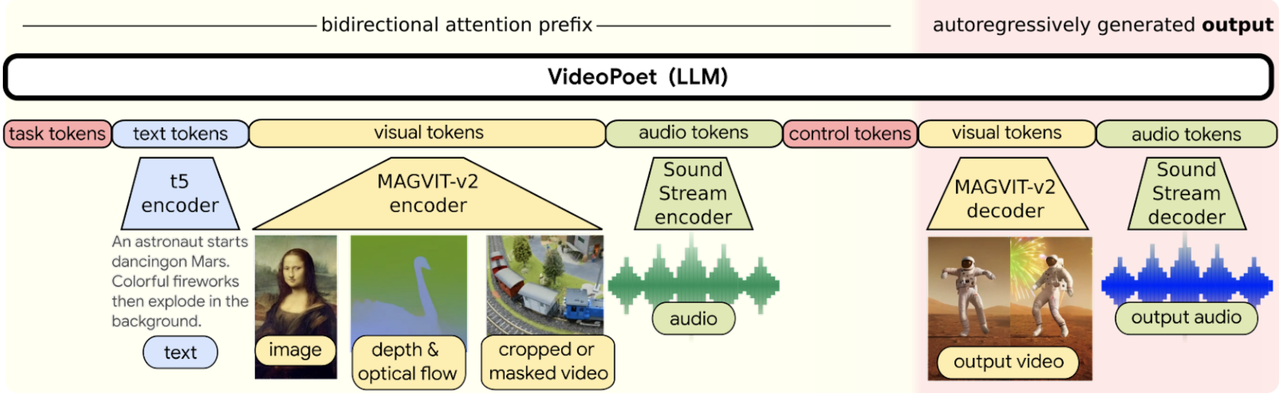 - 다른 AI 비디오 생성 모델과 달리, 비디오포엣은 별도로 훈련된 구성 요소에 의존하지 않고 단일 LLM 내에 여러 비디오 생성 기능을 원활하게 통합합니다. 이를 통해 텍스트, 이미지, 비디오, 오디오 등 다양한 입력으로부터 직관적이고 창의적인 출력을 생성할 수 있습니다.