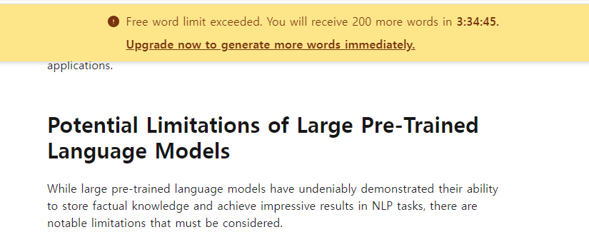 무료 사용이 완료되었고 200 단어를 3시간 34분 뒤에 받을 수 있다고 해요.