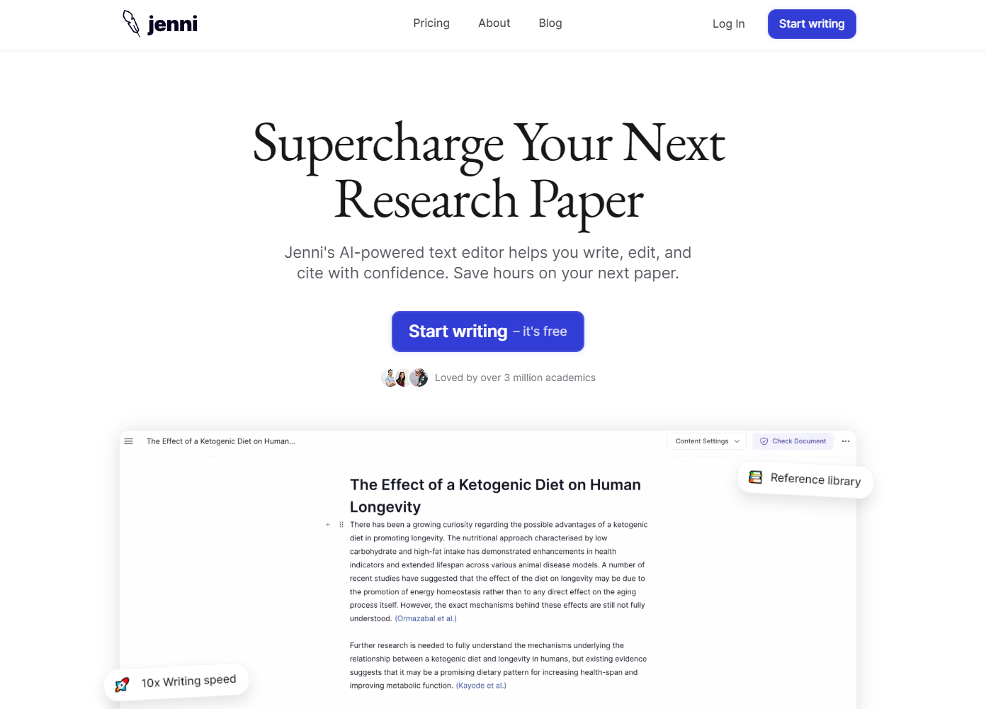 전반적으로 Jenni AI는 연구원과 학생들의 논문 작성 생산성 향상에 초점을 맞춘 AI 어시스턴트 라는 인상을 풍깁니다.