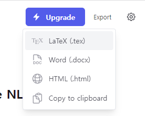 마지막으로 상단의 Export를 선택하면, 아래와 같이 다양한 형태의 문서로 추출이 가능합니다.