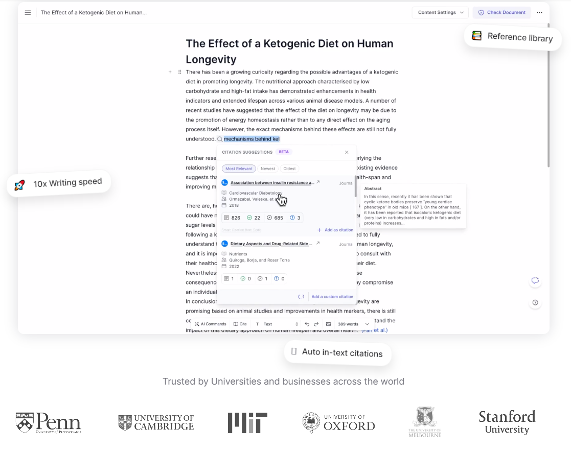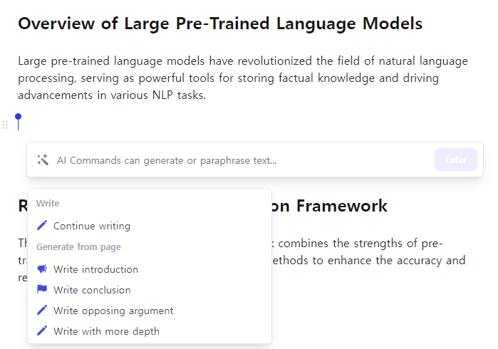 영상으로 인라인에서 AI와 협업하는 듯한 강력한 기능을 보여주는데요, AI의 제안을 Accept하고, Citation을 바로 찾아서 Reference에 추가까지 하는 등의 논문에 특화된 기능들을 제공하는 것을 알 수 있습니다.