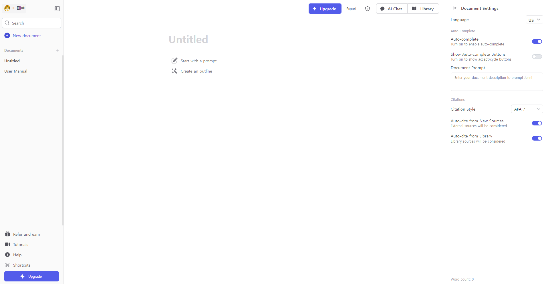 >> Jenni AI 직접 사용해보기