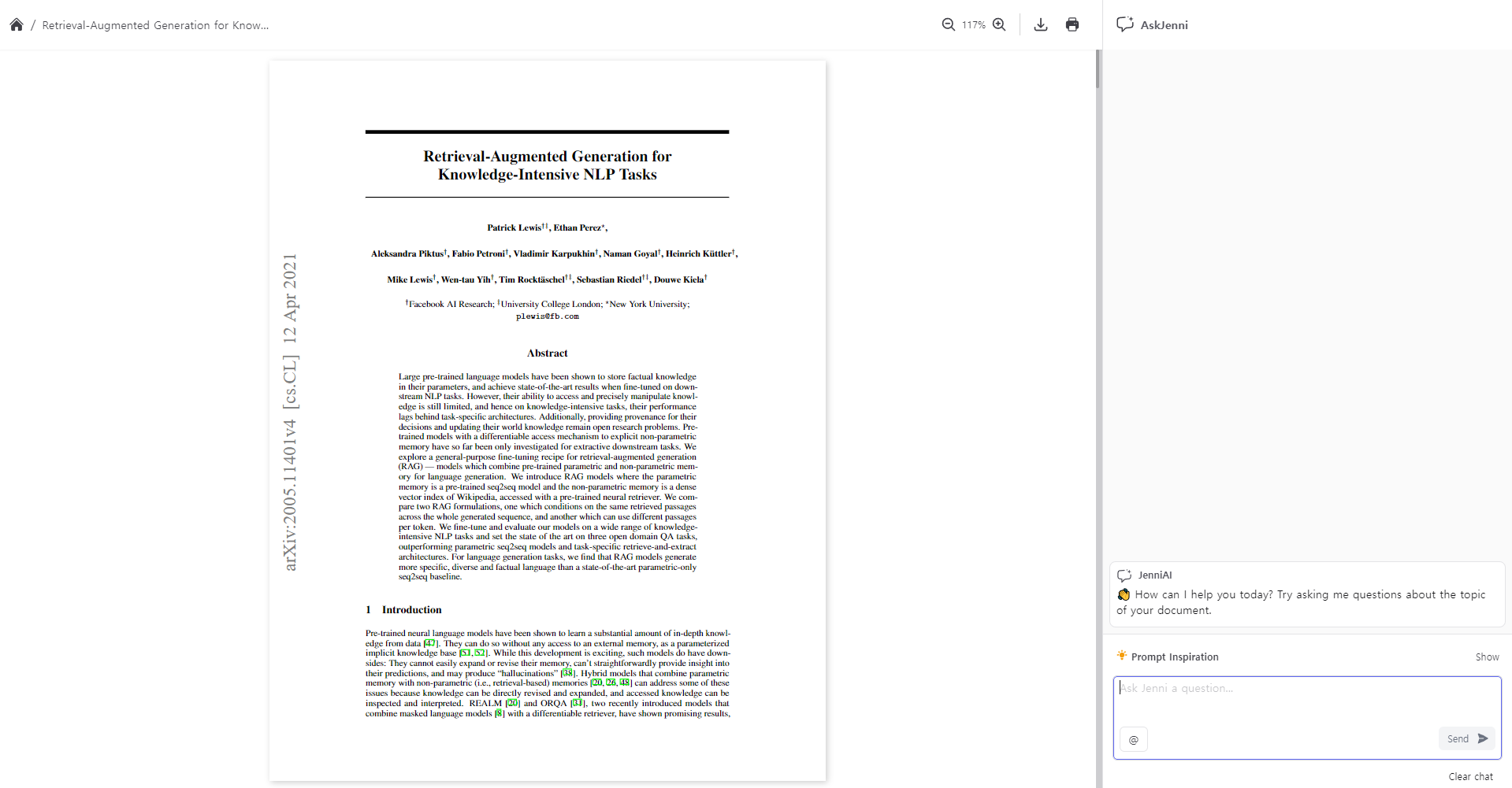JenniAI를 통해 논문과 대화를 할 수 있습니다.