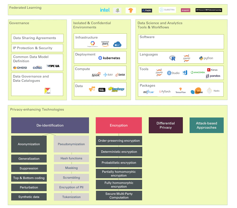 완전하고 안전한 데이터 협업 수명 주기를 위해 통합할 수 있는 범주 및 예시적 도구, 프레임워크 및 플랫폼