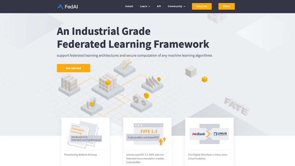 FATE (Federated AI Technology Enabler)는 안전하고 연합된 AI 생태계를 지원하는 것을 목표로 하는 오픈 소스 프로젝트입니다. FATE는 독립 실행형 및 클러스터 배포 설정에 사용할 수 있습니다. 이 오픈 소스 프레임워크는 중국 선전에 기반을 둔 민간 소유 네오뱅크인 WeBank의