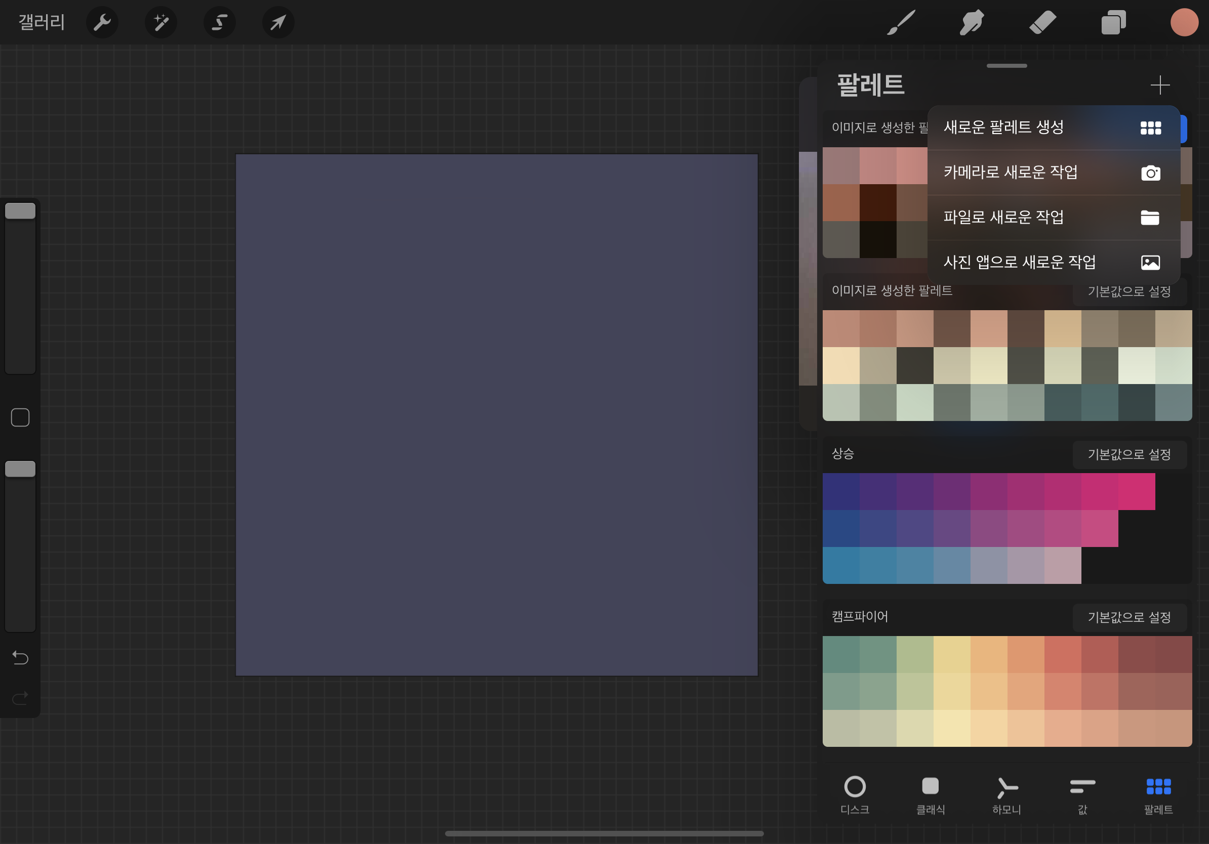 팔레트 > + > 사진 앱으로 새로운 작업 > 레퍼런스 사진 선택
