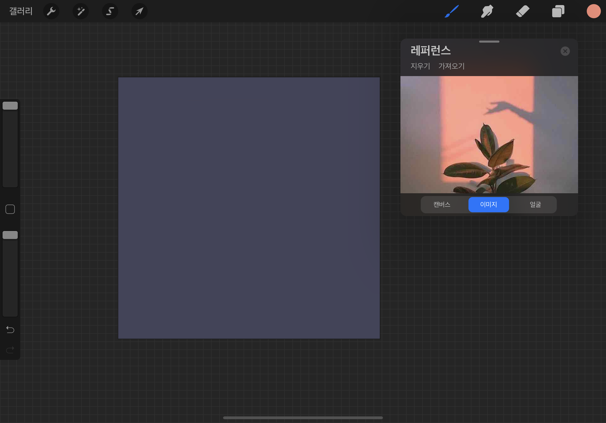 동작 > 캔버스 > 레퍼런스 > 이미지