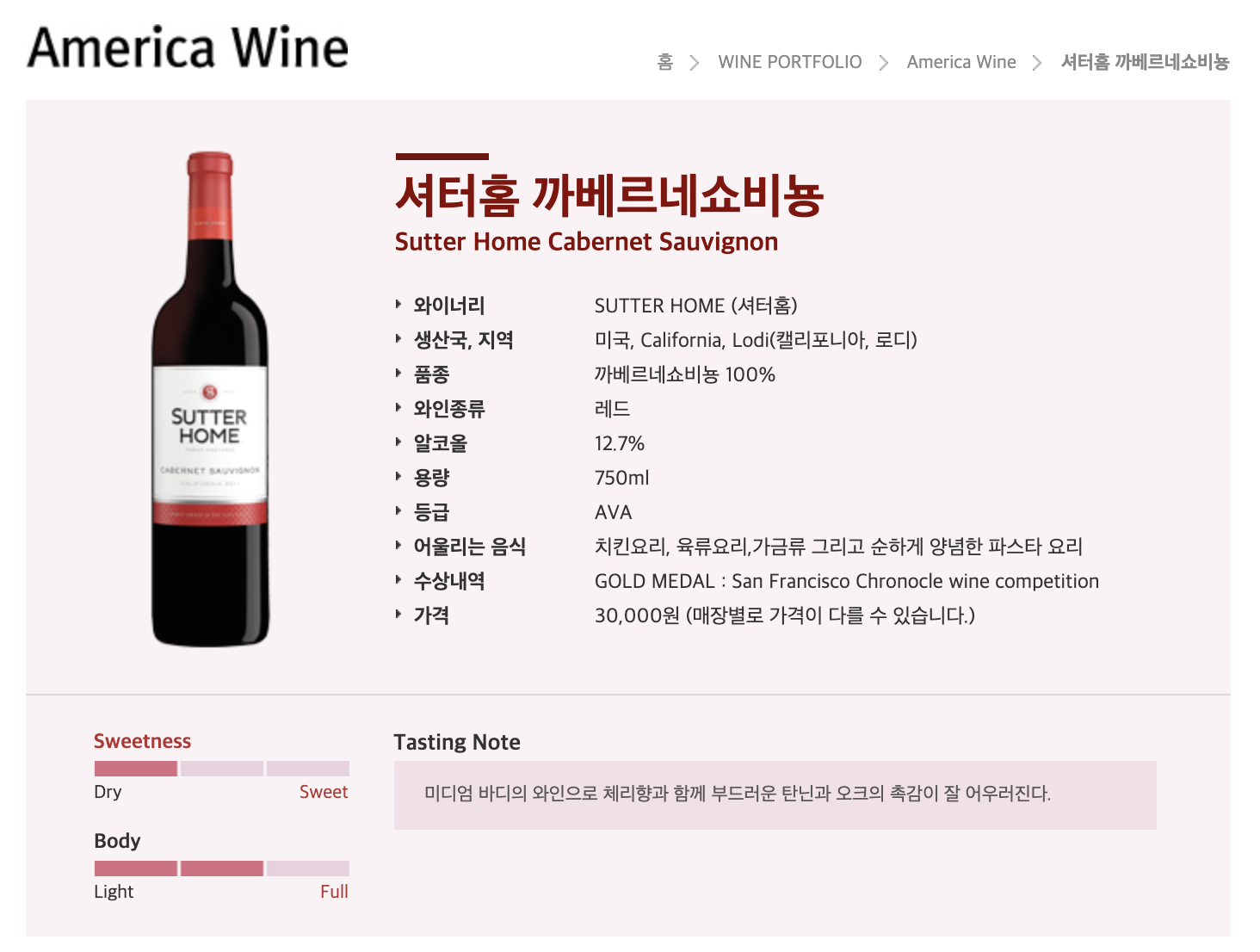 그립감이 있고 많이 달았던 다른와인에 비해 드라이함이 살아있다.