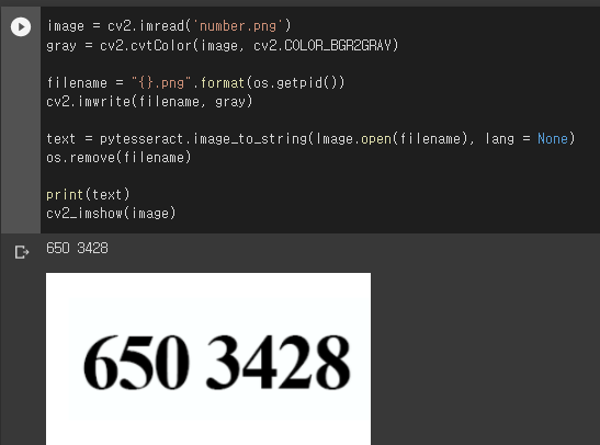 pytesseract, OpenCV(cv2), os, PIL, 그리고 코랩에서 cv2 imshow를 하기 위한 녀석까지 불러들인다.